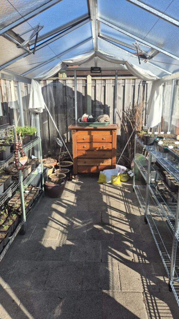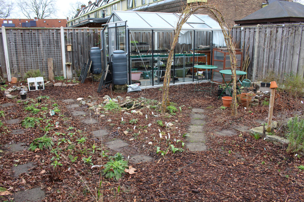 Deze maand is er veel gebeurd voor en in de tuin. Waar we eind januari nog door de sneeuw liepen hadden we begin februari een heerlijk zonnige warme dag. In mijn kas steeg de temperatuur al naar 21 graden. Een kopje koffie in de kas voelt dan als vakantie in eigen tuin! Met mijn lieve neefje en nichtje zaaide ik siererwt en dat kon gewoon buiten zonder jas! Enkele dagen later zat ik buiten mijn eerste lunch te eten in het zonnetje en gingen de allereerste opgekweekte planten de voortuin in. Veel ‘eerste’ momenten in de eerste week van februari.