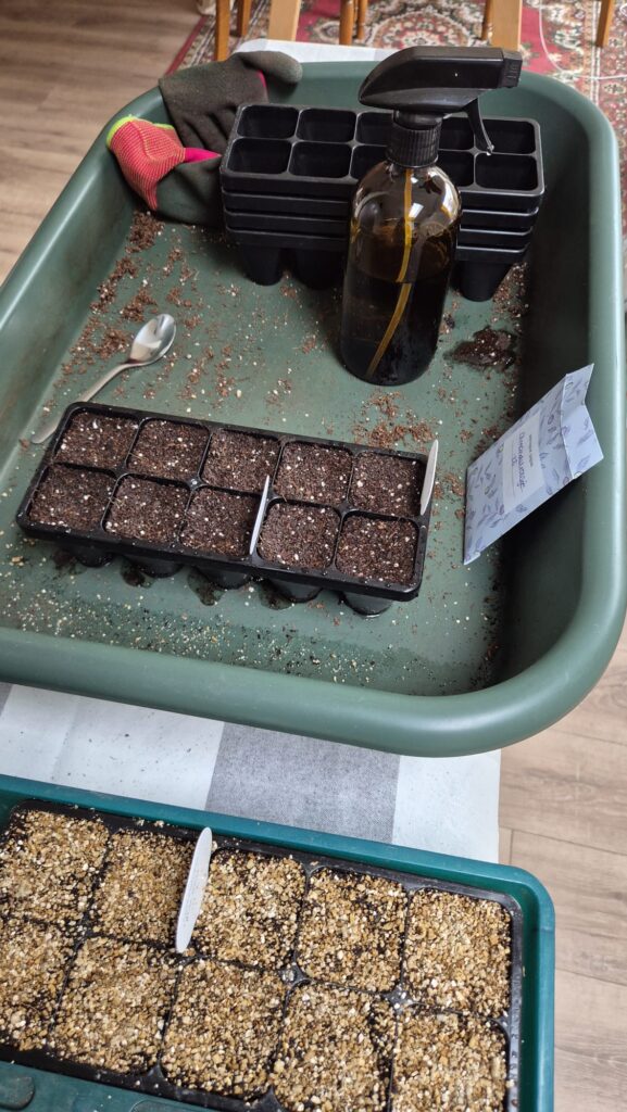Halverwege februari begon het grote zaaiwerk. Tijdens Valentijnsdag gaf ik met alle liefde vele zaden een plek in zaaitrays. Dit deed ik lekker warm binnen aan de strijkplank met Afrikaanse muziek door de speakers. In de kas vond ik het daarvoor op dat moment te koud. Daarnaast kregen de zaaitrays toch eerst een plek in de vensterbank! Netjes schreef ik in mijn schriftje wat ik gezaaid had en hoeveel. Ik zaaide 21 soorten! Ik ben zo ontzettend nieuwsgierig hoe alles zich gaat ontwikkelen. En de grote hamvraag is: heb ik wel genoeg ruimte wanneer ik alles moet verspenen? OEPS! Sommige dingen moet je maar gewoon zien en ervaren.