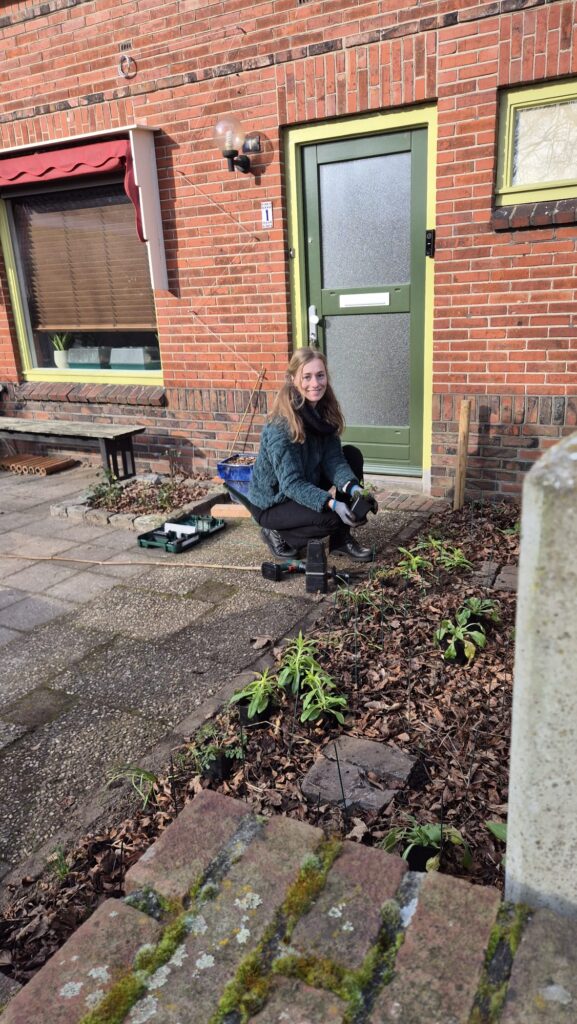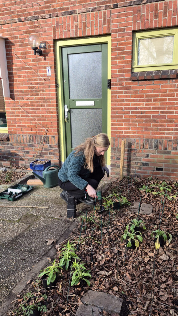 Verder vervoerde ik betongaas voor een klimrek op mijn fiets (hoe Nederlands?!), plaatste ik een bijenhotel van Bijdemaker aan de schutting, vulde ik het schors aan en haalde ik blad van planten af zodat deze meer licht vangen om te groeien. Ik ben er helemaal klaar voor. De sneeuwklokjes luidden in mijn tuin geen nieuw begin in, maar aan alles voel ik dat dit het moment is. De tijd van groei is aangebroken en ik kijk uit naar de eerste roze bloemen die voor Marij in bloei gaan komen.